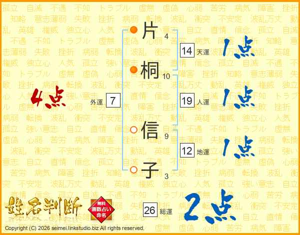 片桐信子さんの総運は26画の2点!