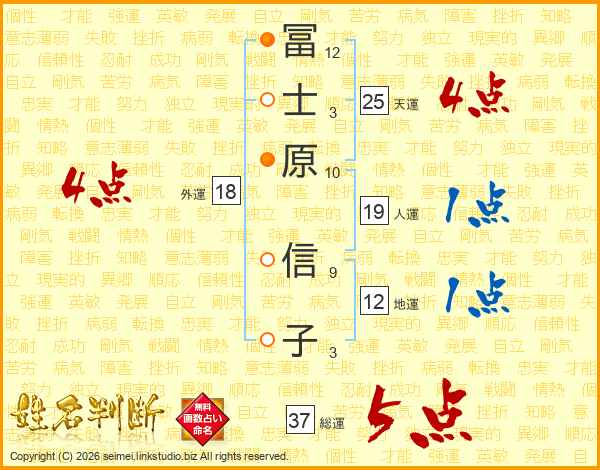 冨士原信子さんの総運は37画の5点!