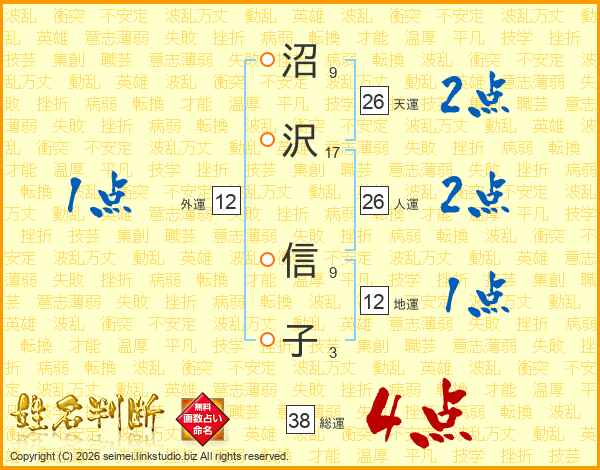 沼沢信子さんの総運は38画の4点!