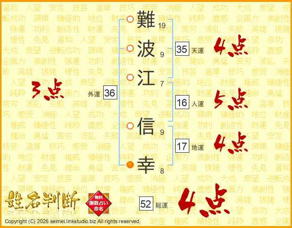 難波江信幸さんの総運は52画の4点!