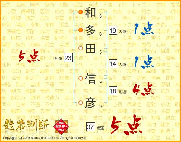 和(8画)多(6画)田(5画) 信(9画)彦(9画)