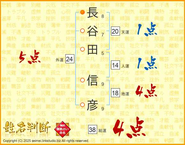 長谷田信彦さんの総運は38画の4点!