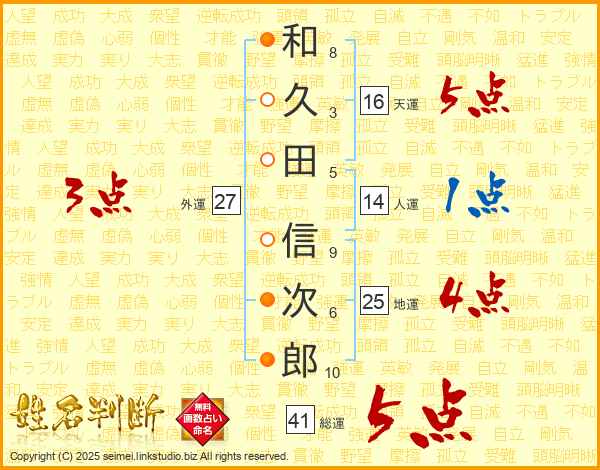 和(8画)久(3画)田(5画) 信(9画)次(6画)郎(10画)