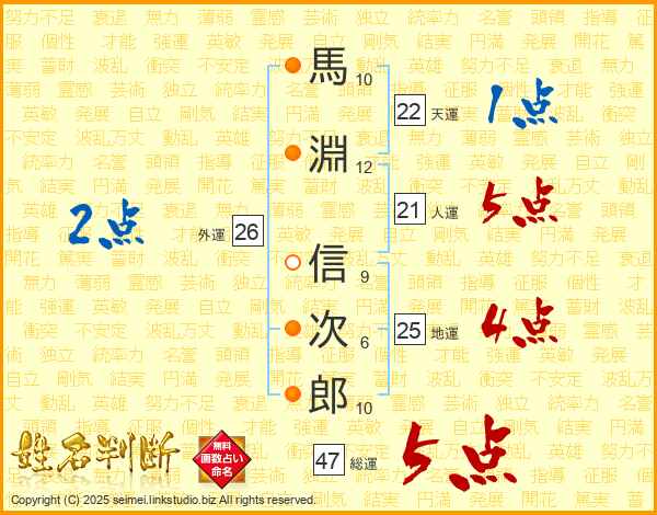 馬淵信次郎さんの総運は47画の5点!