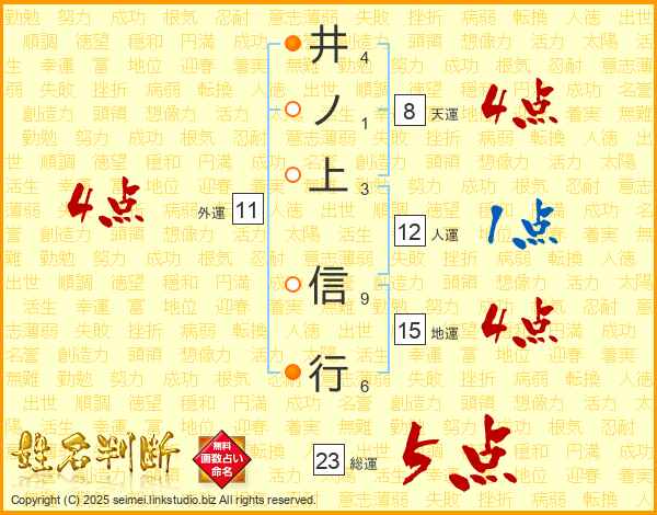 井(4画)ノ(1画)上(3画) 信(9画)行(6画)