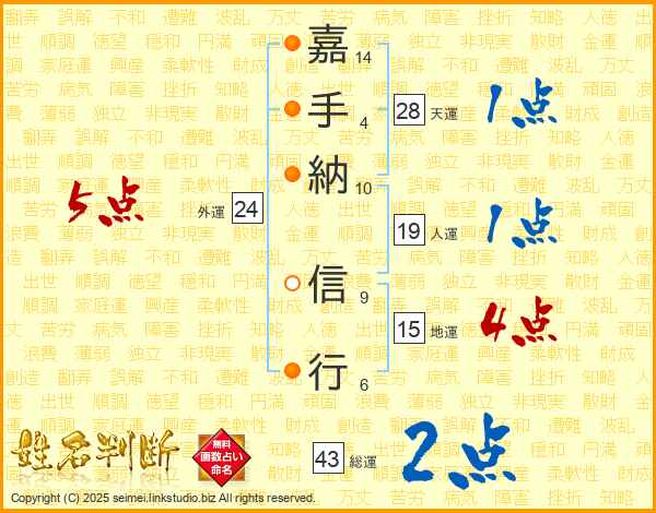 嘉手納信行さんの外運は24画の5点!