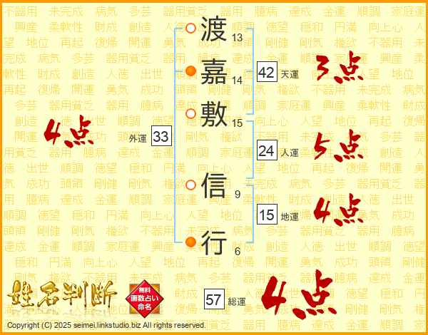 渡嘉敷信行さんの外運は33画の4点!