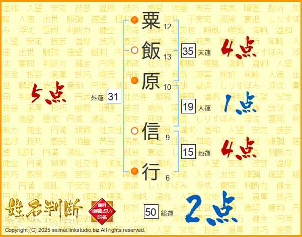 粟(12画)飯(13画)原(10画) 信(9画)行(6画)