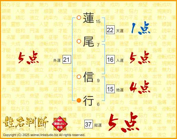 蓮尾信行さんの総運は37画の5点!