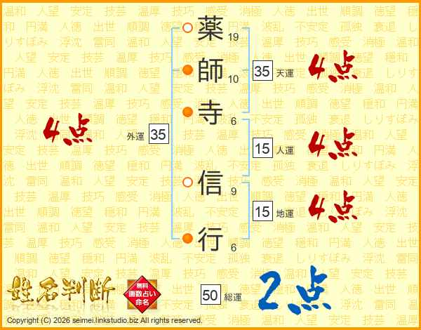 薬師寺信行さんの外運は35画の4点!