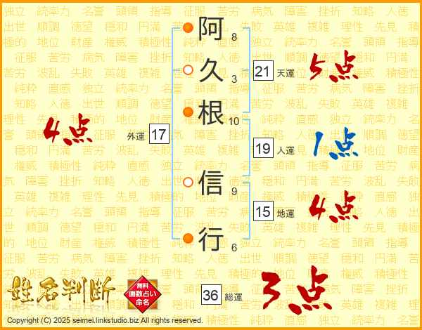 阿久根信行さんの天運は21画の5点!