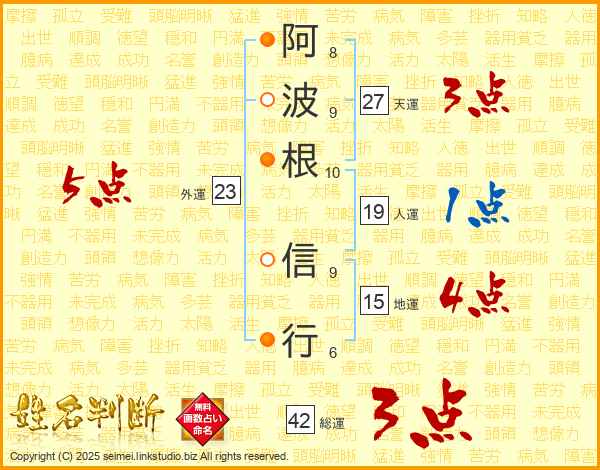 阿波根信行さんの天運は27画の3点!