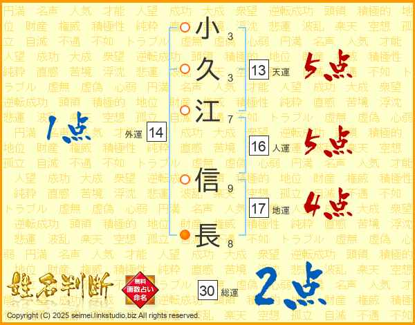 小(3画)久(3画)江(7画) 信(9画)長(8画)