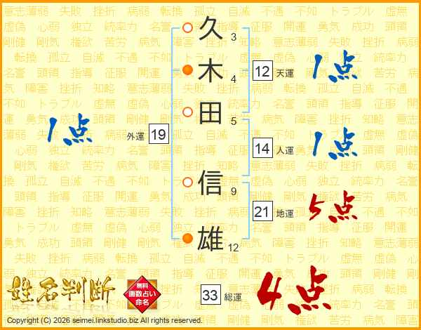 久木田信雄さんの総運は33画の4点!