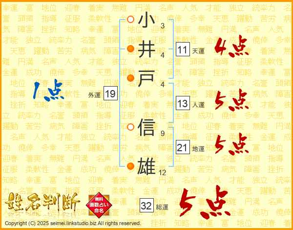 小(3画)井(4画)戸(4画) 信(9画)雄(12画)