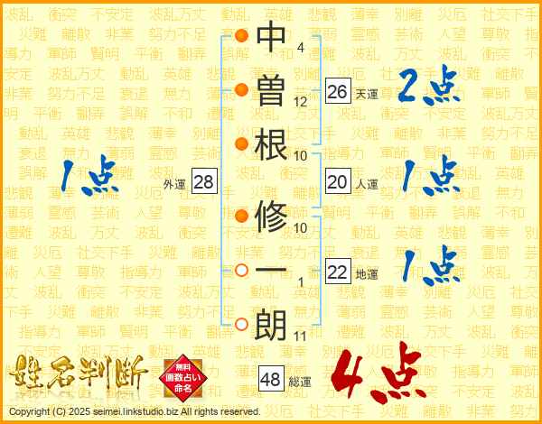 中曽根修一朗さんの総運は48画の4点!