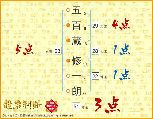 五百蔵修一朗さんの総運は51画の3点!