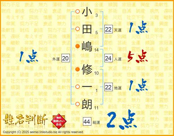 小田嶋修一朗さんの総運は44画の2点!