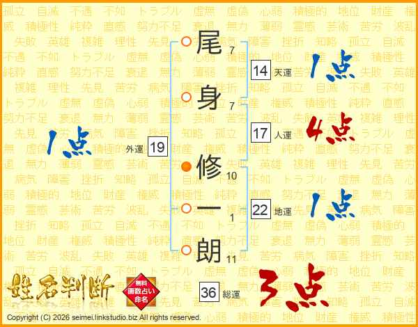 尾身修一朗さんの総運は36画の3点!