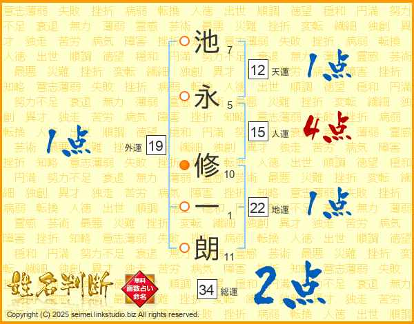 池(7画)永(5画) 修(10画)一(1画)朗(11画)