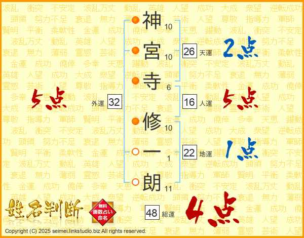 神宮寺修一朗さんの外運は32画の5点!