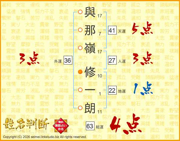 與那嶺修一朗さんの総運は63画の4点!