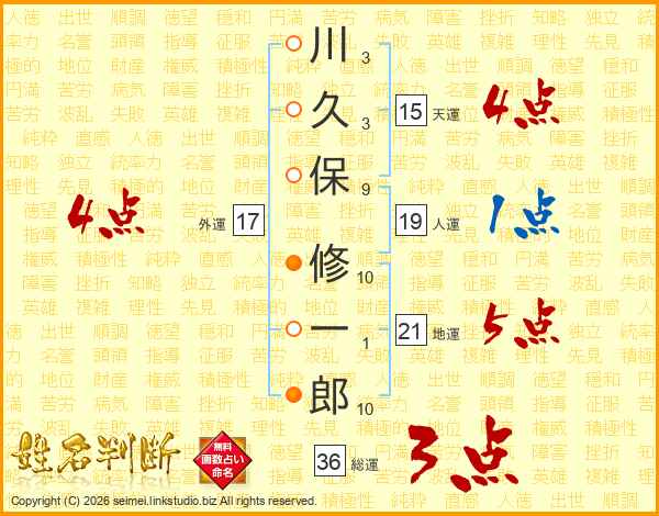 川久保修一郎さんの総運は36画の3点!