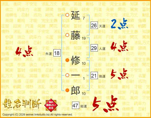 延藤修一郎さんの天運は26画の2点!
