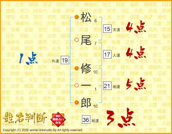 松尾修一郎さんの総運は36画の3点!