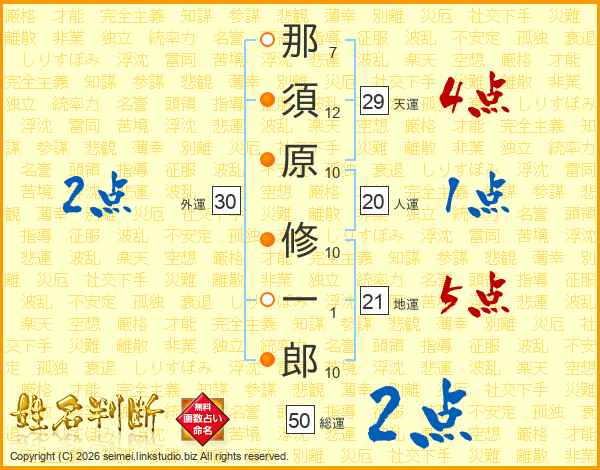 那須原修一郎さんの人運は20画の1点!