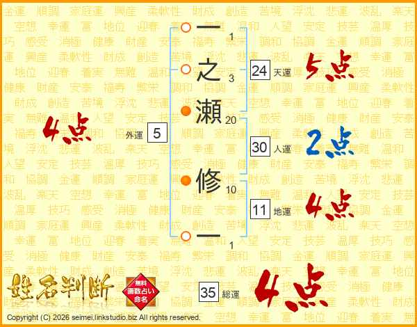 一之瀬修一さんの総運は35画の4点!