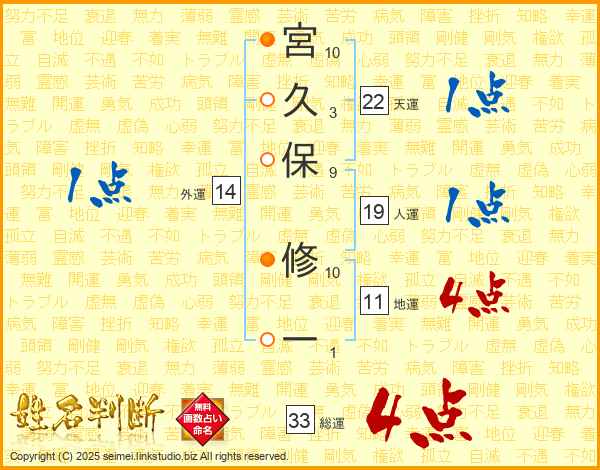 宮久保修一さんの総運は33画の4点!