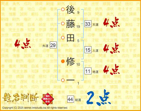 後(9画)藤(19画)田(5画) 修(10画)一(1画)