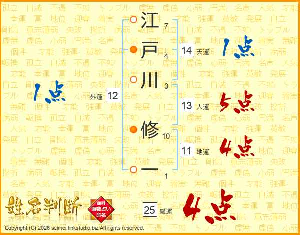 江(7画)戸(4画)川(3画) 修(10画)一(1画)