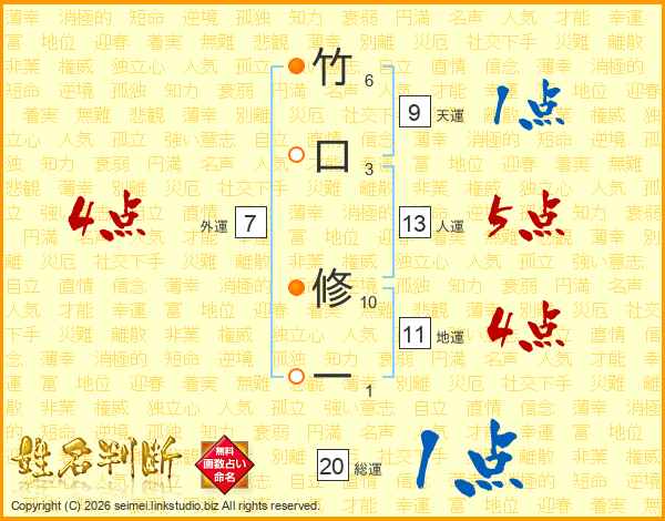 竹口修一さんの人運は13画の5点!