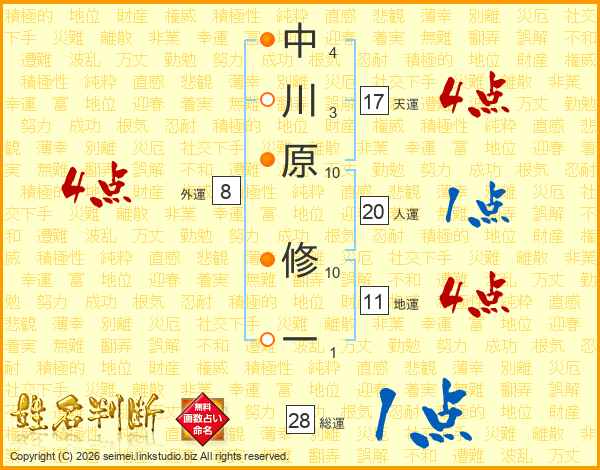 中川原修一さんの総運は28画の1点!