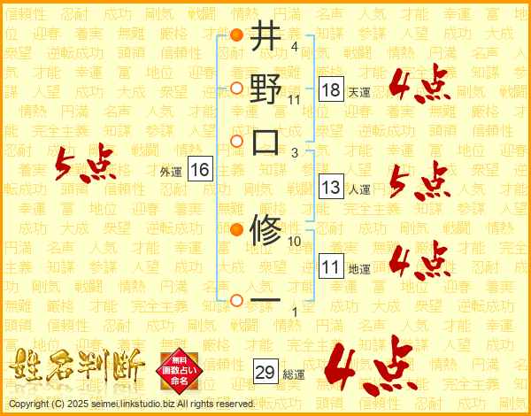 井(4画)野(11画)口(3画) 修(10画)一(1画)