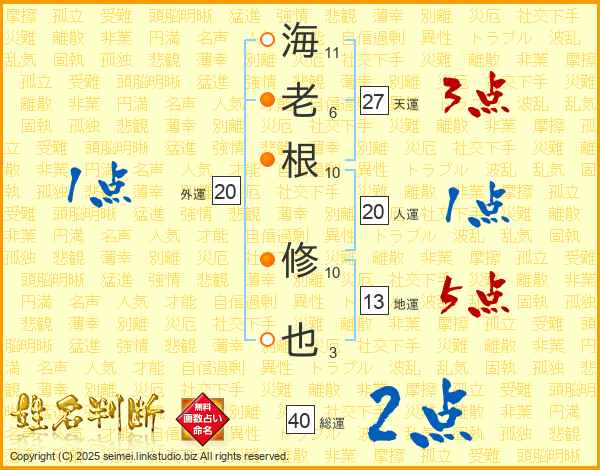 海老根修也さんの天運は27画の3点!