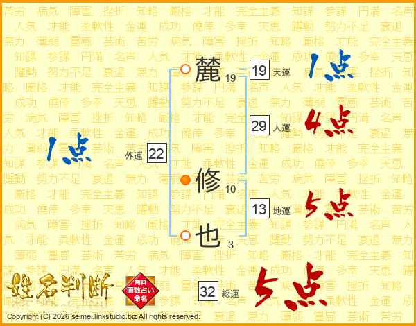 麓修也さんの総運は32画の5点!