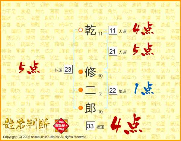乾修二郎さんの総運は33画の4点!