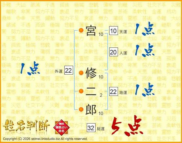 宮修二郎さんの総運は32画の5点!