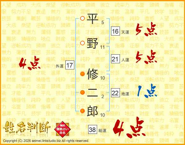 平野修二郎さんの総運は38画の4点!