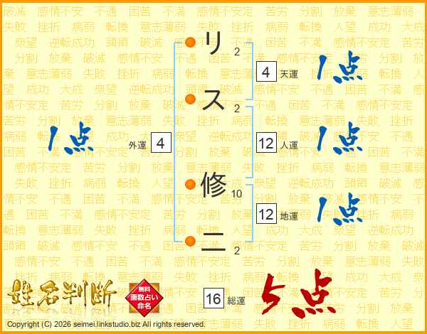 リス修二さんの総運は16画の5点!