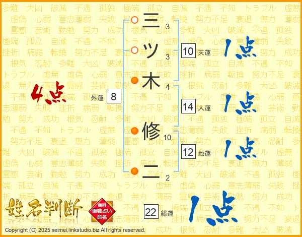 三(3画)ツ(3画)木(4画) 修(10画)二(2画)