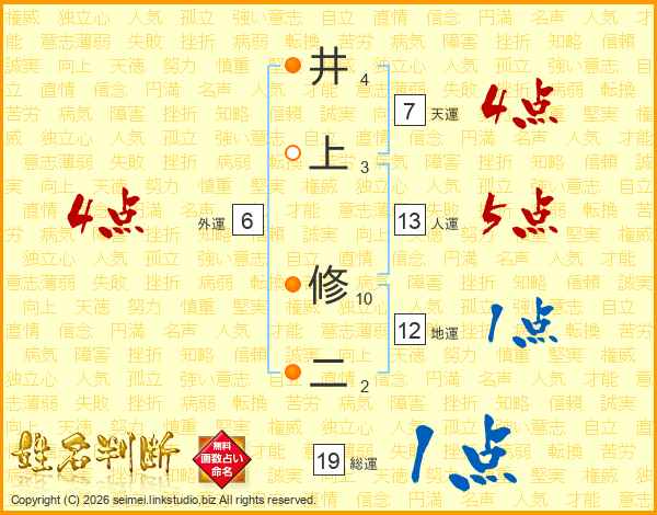 井上修二さんの総運は19画の1点!