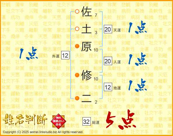 佐(7画)土(3画)原(10画) 修(10画)二(2画)