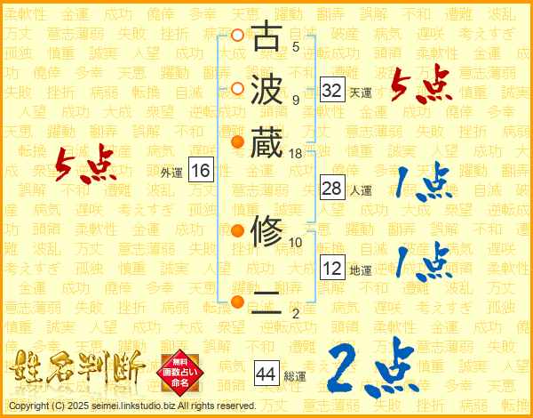古(5画)波(9画)蔵(18画) 修(10画)二(2画)