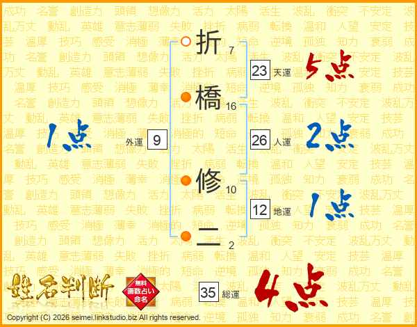 折橋修二さんの総運は35画の4点!