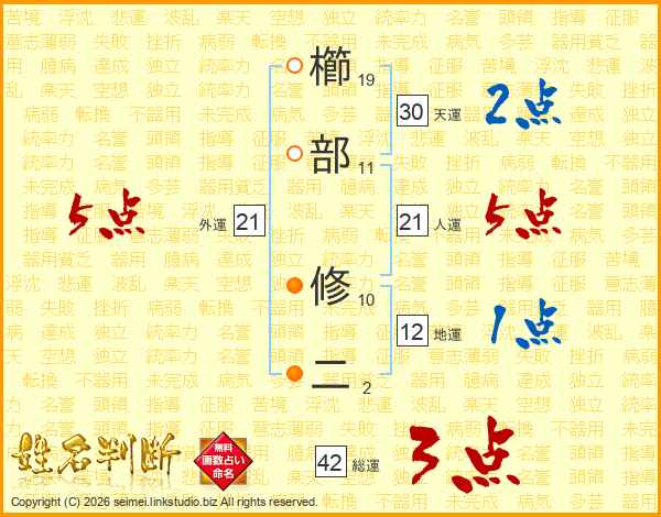 櫛部修二さんの総運は42画の3点!
