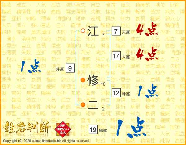 江修二さんの総運は19画の1点!